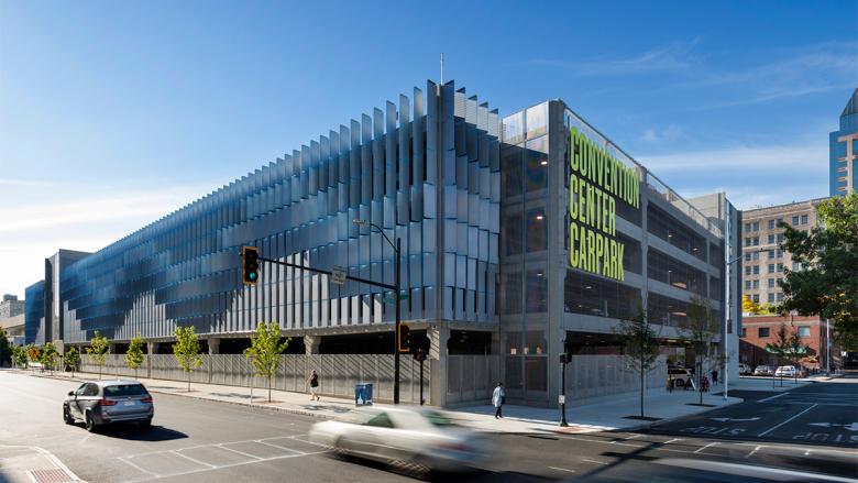 The plaza functions as both a public park and a rentable event space that generates revenue for the convention center, increases the urban tree canopy, and expands the site’s permeable surface. The landscaped plaza design provides catenary lights for evening concerts, exhibition games, and events with flexible four-season programming. The car park’s first-level public balcony space and exterior stair system overlook the plaza to enhance public safety and create a proscenium for special events. By introducing daylight, ventilation, and green landscapes, the CarPark design creates a distinctive experience with authentic connections to Springfield’s natural history and industrial innovation as America’s “City of Firsts.”
