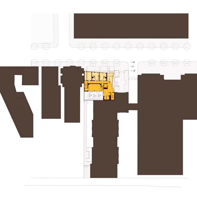La Casa has important urban planning responsibilities. Pedestrians exiting the metro station and traveling west will be greeted by its transparent glowing lobby. Sightlines extend from La Casa to the metro station, and the vibrancy of the building and its residents is reflected in the comings and goings of metro riders.