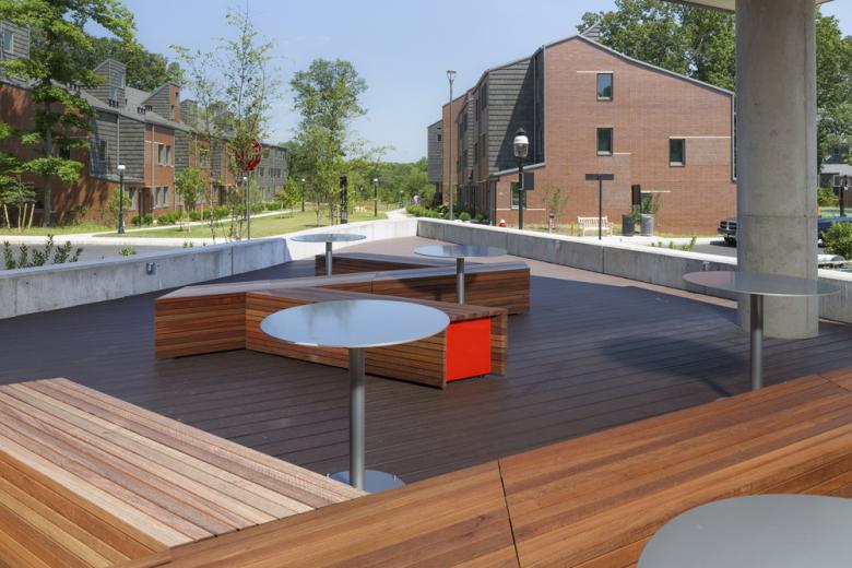 The program for the project was developed through extensive research of Princeton’s graduate community, the primary users of the facility. Princeton had assumed that the large majority of the units would be studios and one bedrooms.  However, after a series of surveys and focus groups it was found that the graduate community was made up of a range of groups, each with their own living needs and preferences. It was also found that the community changed over time, with the younger students expressing a strong preference for the relatively-low cost, communal option offered by larger two and three bedroom units. The privacy and individual amenities offered by studios and one bedroom units became more important with more established students and couples. Town home and midrise building typologies provide additional lifestyle options for the community while enhancing the human scale of the building in the landscape.