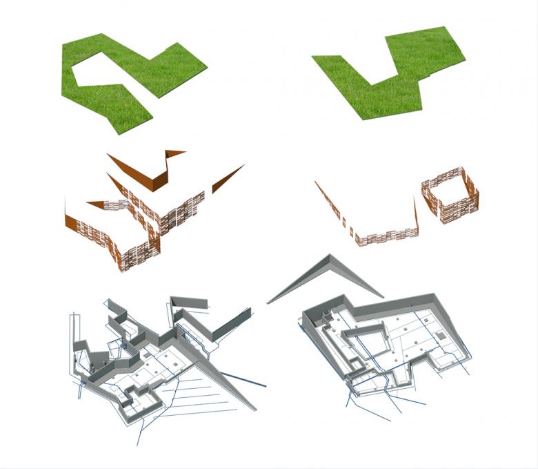 From the beginning our instinct was to blur the line of the ground plane to integrate the experience of the building with the unique topography of the sloping site. Creating a series of smaller buildings instead of one large structure would also allow a play between landform and building, inside and outside.