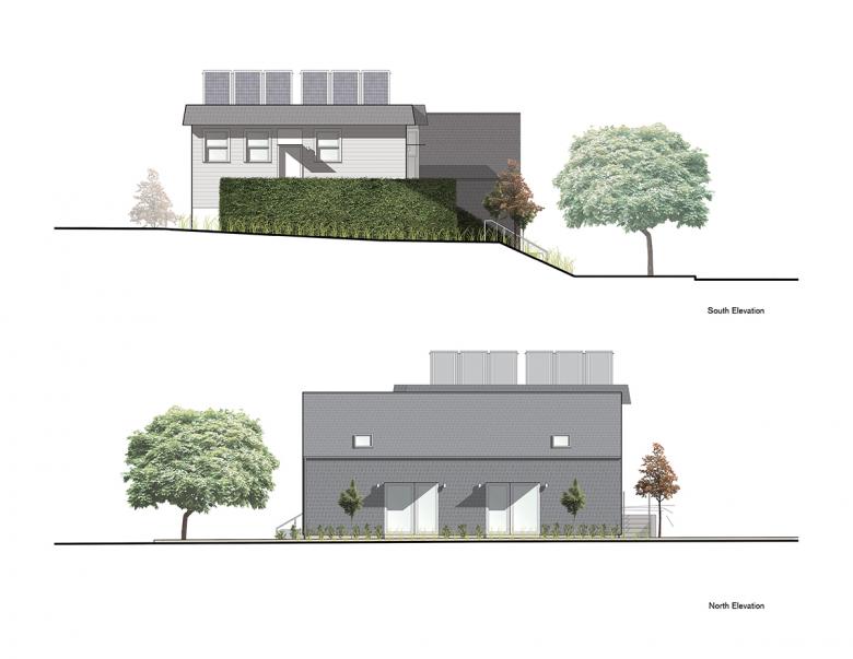 Building Area: 660 sf (new construction), plus interior & exterior renovations, site improvements, new entry decks, new solar hot water