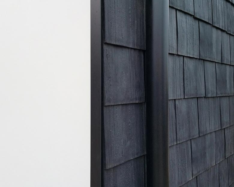 The cladding of the two-unit addition provided a new aesthetic direction for the overall facility. A durable black composite roof shake (EcoStar Seneca) was used for both the roofing and cladding for the addition’s north and south elevations outlining the gabled building form. The same shake was then used to reroof the mansard parapet of the existing building.