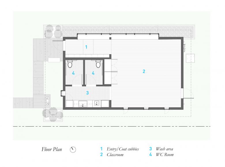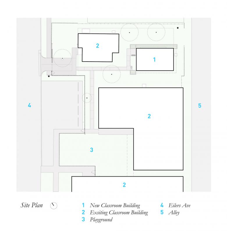 Little Tiger is a Chinese language immersion school for pre-k, kindergarten, and lower elementary education. It is located in a residential neighborhood in central Austin. After operating at capacity out of a converted residential bungalow and portions of an adjacent church building, the school added a new one-room classroom structure to create a small-scale campus and increase enrollment.