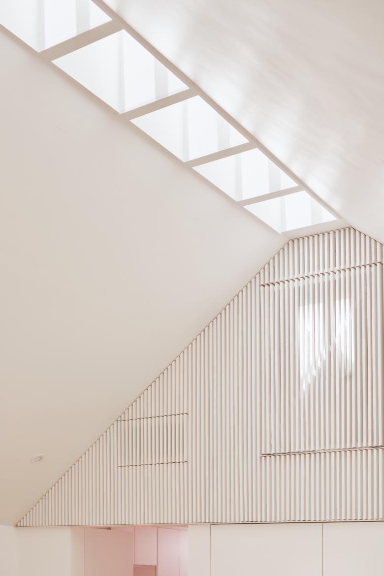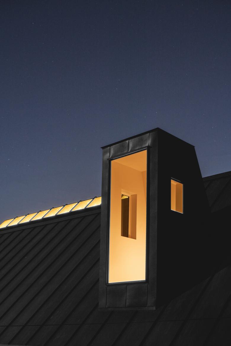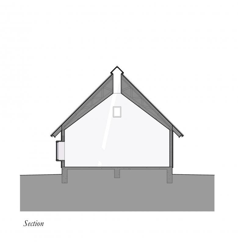 The basic concept changed very little. We started with this idea of creating an over-sized low roof as a kind of sheltering gesture and scale shift. It’s a traditional gable roof but the proportions and overall geometric configuration is not traditional, it’s unexpected and a bit surprising. It's this combination of a traditional plain form and unexpected and surprising final shape that interests us. We also feel that it was a way to relate to the imagination of children. It’s a “house” but not a house. Like a child’s drawing of a house or something from a dream. Familiar but unfamiliar at the same time.