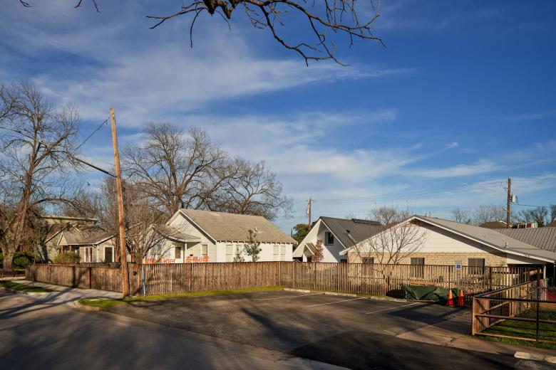 The project utilizes provisions in the Austin development code for compatible uses within residentially zoned properties, such as community schools, which creates a more diverse urban fabric within the typical single-family residential neighborhood.