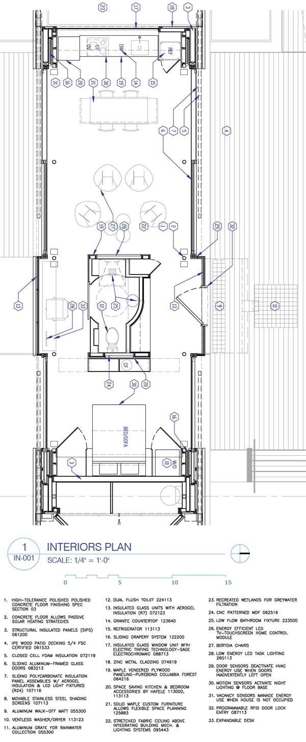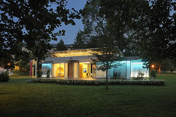 The best way to address issues of energy in buildings is to use as little as possible. The pavilion architecture allows low-energy patterns of use through passive heating, solar shading, and cross ventilation. Responsive Architecture optimizes energy use by adapting to changing environmental conditions while increasing the quality of space. Utilizing smart home technology and environmental controls the house produces more energy than it consumes while providing for increased livability. Through the concept of Responsive Architecture, the house employs sliding fenestrations (Eclipsys System) to optimize energy use while providing for different architectural spatial qualities. Computer automated controls allow the house to automatically adapt to changing environmental conditions. Living in smaller and adaptable houses uses fewer resources, and the prefabricated construction process reduces waste and increases efficiency. We can downsize our dwellings while improving the quality of life.