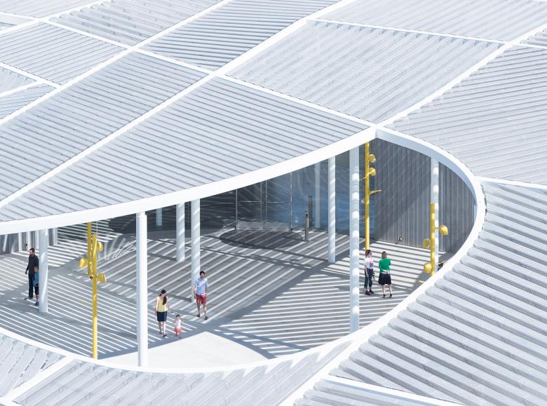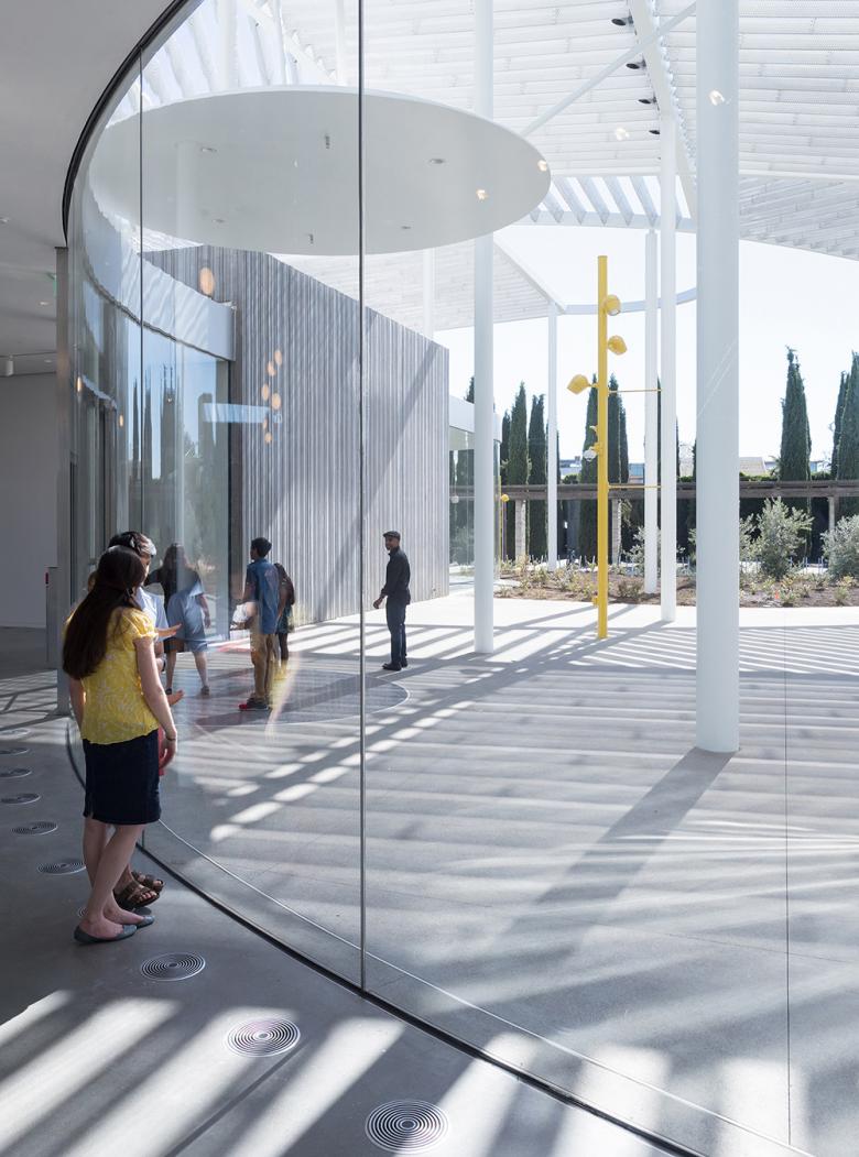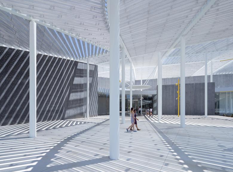 Under the canopy, events are generated by movement of the sun and changing seasons, producing a tapestry of shadows and constantly mutable silhouettes as visitors move through the public plaza. Lines from the site and its surroundings carry through to help shape the courtyard's design. Beyond serving as a gateway to the museum lobby, this outdoor space will provide opportunities for interactive learning, open-air exhibitions, and performance; two exterior projection walls will also display digital works and film.