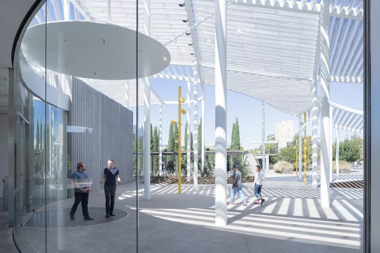 As a new focal point and destination for the entire community, the Manetti Shrem completes UC Davis' vision for an arts district on the south side of campus, complementing the Mondavi Center for the Performing Arts. It will be home to rotating collections of works, classes, studios and shared communal spaces, all housed under its defining architectural feature, a 50,000-square-foot floating "Grand Canopy" of perforated aluminum triangular beams.