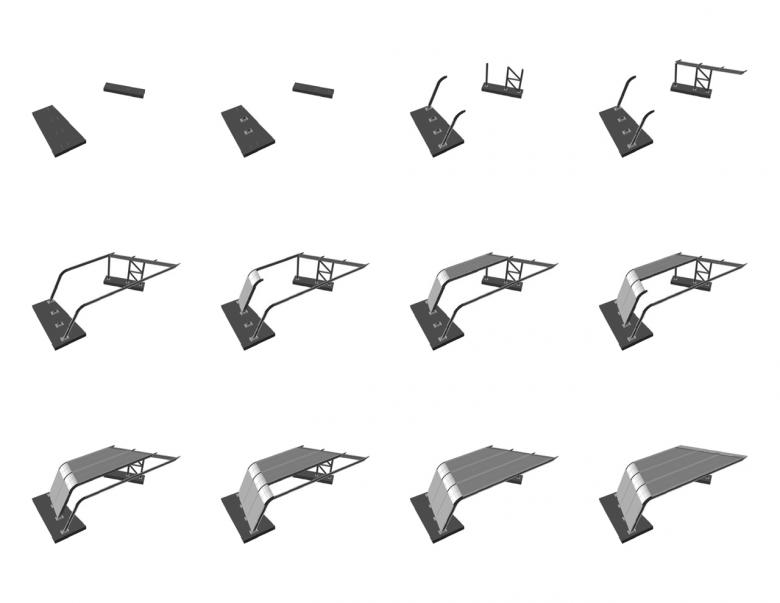 Digital fabrication played a substantial role in the sustainability of the project by maximizing structural efficiency and minimizing waste. The structure of band shell walls are comprised of prefabricated wood trusses. The geometry of the trusses was determined by cutting the 3D model every two feet on center. The trusses were then machine fabricated offsite by a conventional wood truss manufacturer. This mass customization helped to limit both human error and time spent building.