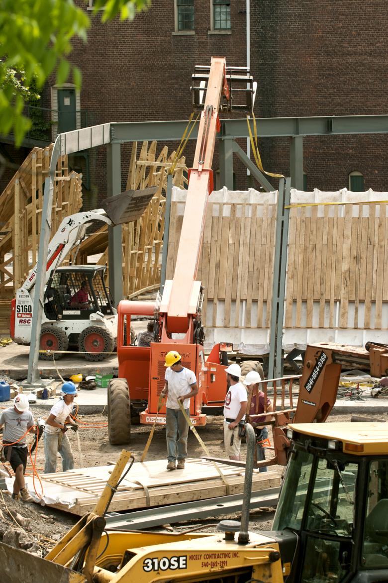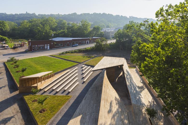 Previously, World-Architects featured the Covington Farmers Market, designed and built by the design/buildLAB at Virginia Tech. That structure reused wood from a warehouse whose site is now the Masonic Amphitheatre, which sits upon the warehouse's foundation. This connection across different classes illustrates one aspect of the design/buildLAB, namely its concern with environmental responsibility. The LAB answered some questions about the Masonic Amphitheatre, which builds upon the ambitions of last year's Farmers Market.