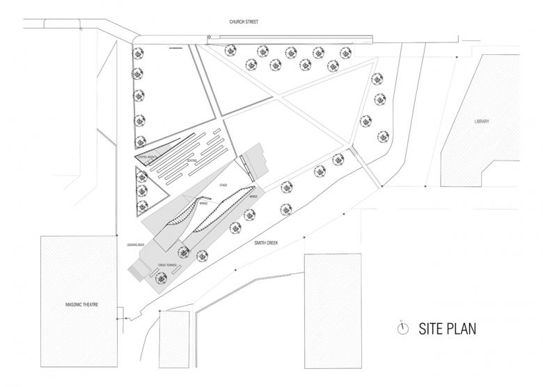 The design process began with an extensive study of the site and the context within which it was situated. Interviews with the client and community, including local musicians and performers, helped determine programmatic requirements. Each member of the design/buildLAB made an individual proposal for the site. The 16 schemes were progressively merged together into three collaborative concepts, of which the strongest elements were consolidated to create our final design.