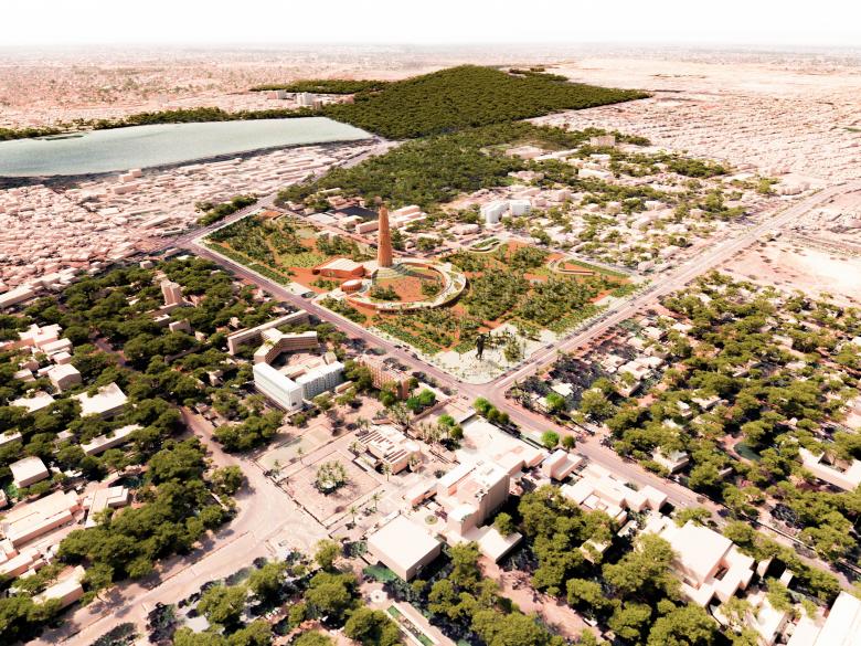 The Thomas Sankara Memorial Park is integrated into the Ouagadougou Green Belt development plan, which will establish new buildings within a park, creating valuable green space for the arid capital city and honoring Sankara's environmental legacy.