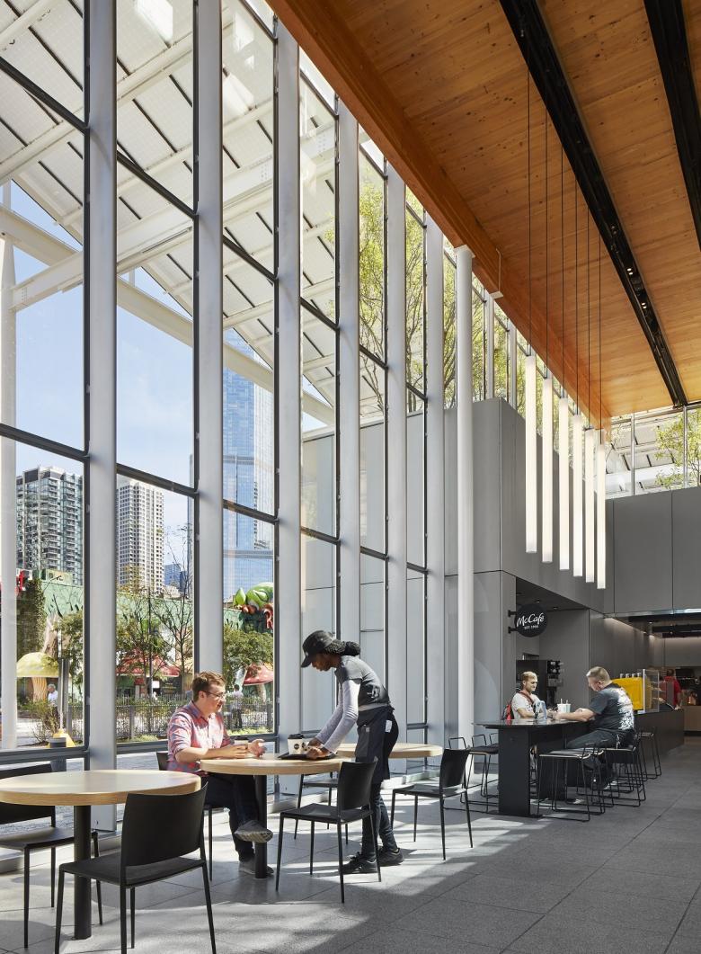 The new Chicago Flagship celebrates the pure simplicity and enduring authenticity of McDonalds, welcoming both residents and visitors to a playful and informal gathering place in the heart of the city.
