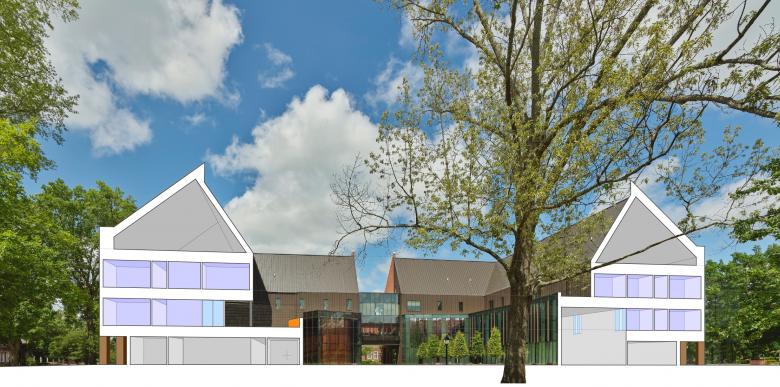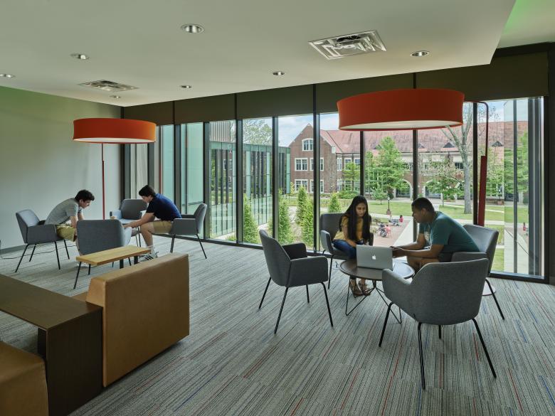 Located in the heart of a traditional, collegiate gothic liberal arts college, the new Miller Creative Quad is a mixed-use building that integrates student housing with music, theater and gallery space. The building is designed to reimagine student housing, to create visual and physical connections to art, to draw activity through the site, to maximize the outdoors, to celebrate the creative process, and most importantly to create a building that allows students "to dwell with the arts."