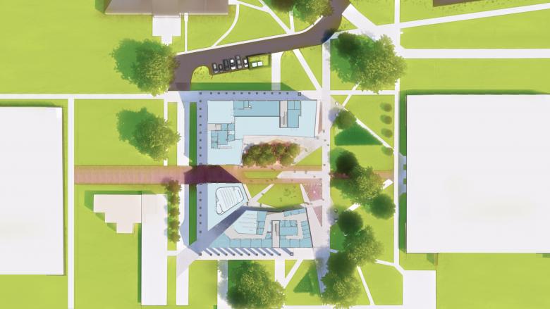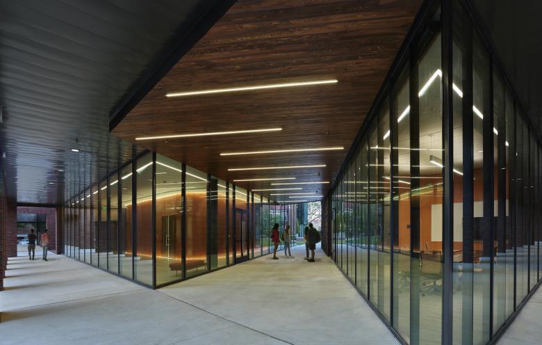 Replacing Hulen Hall, a historic dining hall in the middle of the campus, the design of the new building inverts the figure ground of the original building; rather than repeating the diagram of an impervious campus structure that disrupted campus circulation, the new footprint reveals an open ground plane with an internal courtyard that invites engagement with and passage through for campus students and visitors. While its outer shell is traditional in response to its collegiate gothic context, the interior courtyard purposefully introduces a modern design aesthetic to create a sense of discovery, energy and engagement between the exterior and interior, art and patron, student and teacher.