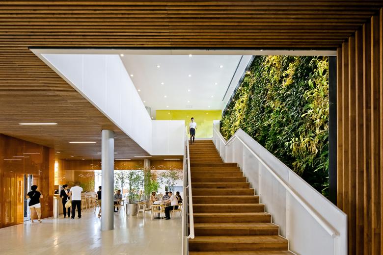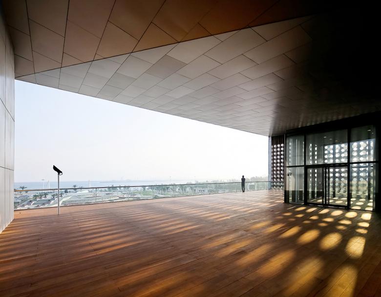 Vector Architects took the challenge by creating a combined public-private space that intermingles the pleasures for tourists with terrific views across the ocean from the top two floors and the business activities of Vanke on the first and second floor.