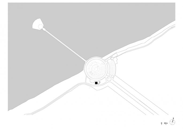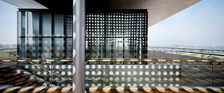 The Vanke Group invited the firm of Vector Architects in summer 2012 for the design of their exhibition pavilion near the shoreline on the circular, green plaza that mediates between the beach and the urban development. Vanke is China’s largest mainland residential real estate developer and needed an appropriate space for its sales in the newly developing city.