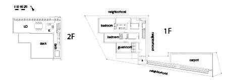The second floor is designed L-pattern type using the stairs as a base point, setting the living-dining-kitchen on the west side, and bathroom on the south east.