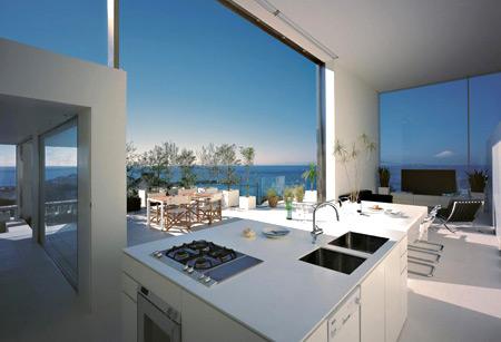 Mt, Fuji that stands over Sagami Bay can be seen from the kitchen. Narrow designed room and the fixed window shows the Mountain as a picture like situation.
