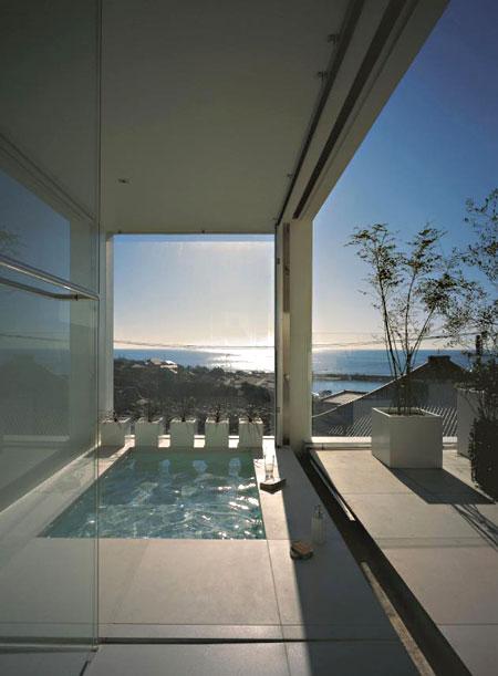 If you soak into the build-in type bath tub, all you can see is just the blue sky and the ocean. By opening the right window, the bathroom integrates with the court deck. Wife of Mr. M says, “It makes me feel as if I’m enjoying the half open aired bath. Nobody can see us from outside, so I feel very relaxed in here”