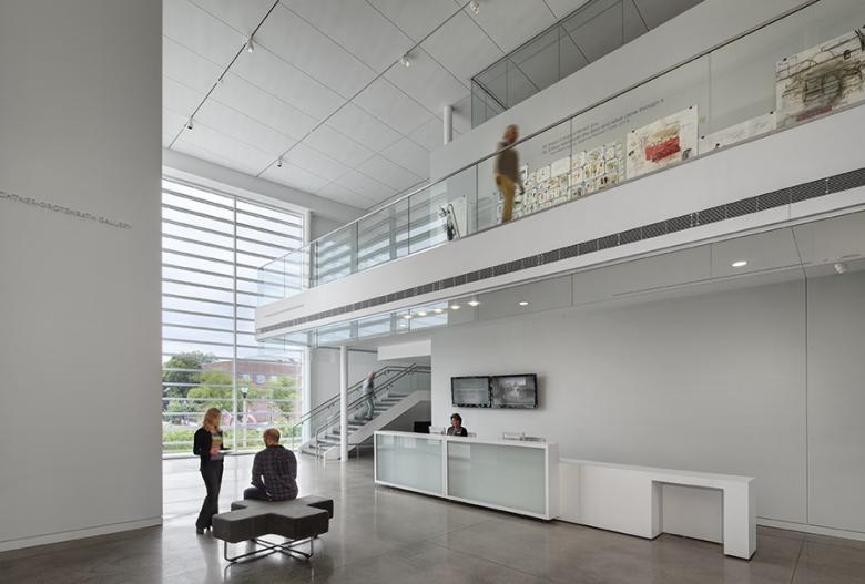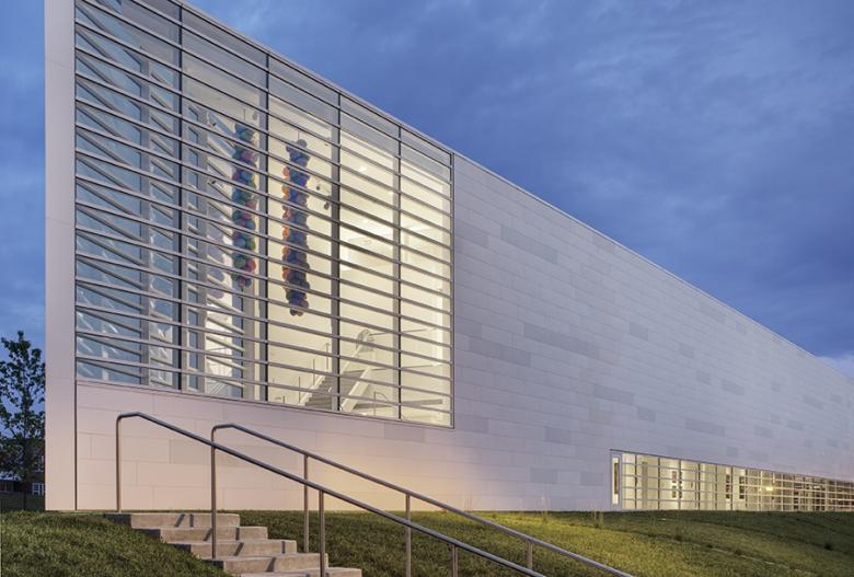 The Museum of Wisconsin Art (MOWA) started in 1961 as the West Bend Gallery of Fine Arts, focused on the collection and display of one local artist, Carl von Marr. Five decades and two name changes later (in between the institution was the West Bend Art Museum) MOWA has moved into a new facility that reflects its larger collection and wider reach. HGA Architects and Engineers answered a few questions about the recently completed building that sits on a triangular lot paralleling the Milwaukee River.