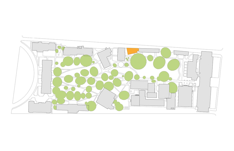 The University’s initial master plan suggested wrapping and concealing the historic building with the new addition due to the location of an existing central transformer. Working closely with the University and studioWTA’s consulting electrical engineer, a plan was developed to relocate the transformer and re-feed several buildings that were being served. Although an extensive reworking of the system, this allowed the footprint of the new addition to be directly adjacent to the existing building instead of in front of it, honoring the historic structure and enabling it to maintain its presence and identity on campus.