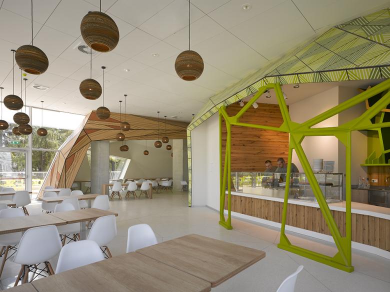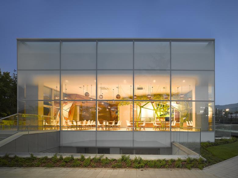 The museum utilizes large areas of glass to reveal the interior and leave an impression of openness and transparency about the activity contained within in contrast to most Bulgarian museums and civic buildings that appear imposing and monumental. This was seen as important both in terms of creating an inviting public building but also making this unique project type, a children’s science museum, feel welcoming and accessible by Bulgarian children and families.