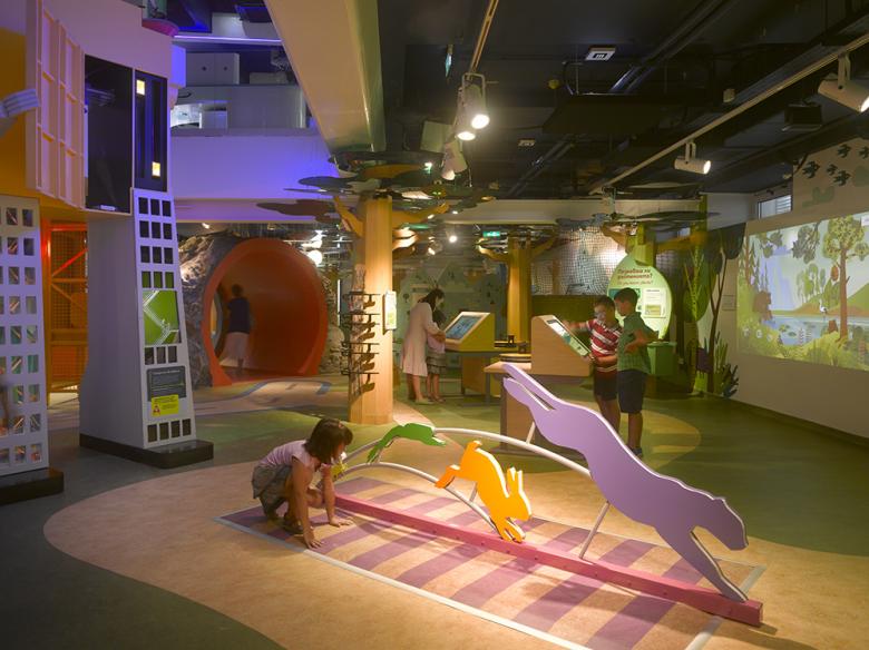 Muzeiko, located in Bulgaria’s capital city of Sofia, is the first children’s museum in the country and the largest in southeastern Europe. Organized conceptually as a journey moving through time and space, visitors can explore three levels of exhibits in the 35,000-sf (3,250-sm) facility. On the lowest level, children explore “the past” with exhibits based on archaeology, geology and paleontology. The ground floor is “the present,” represented by hands-on displays about the natural environment and contemporary cities. The top floor is dedicated to “the future” with interactive exhibitions featuring cutting-edge technologies and space travel.