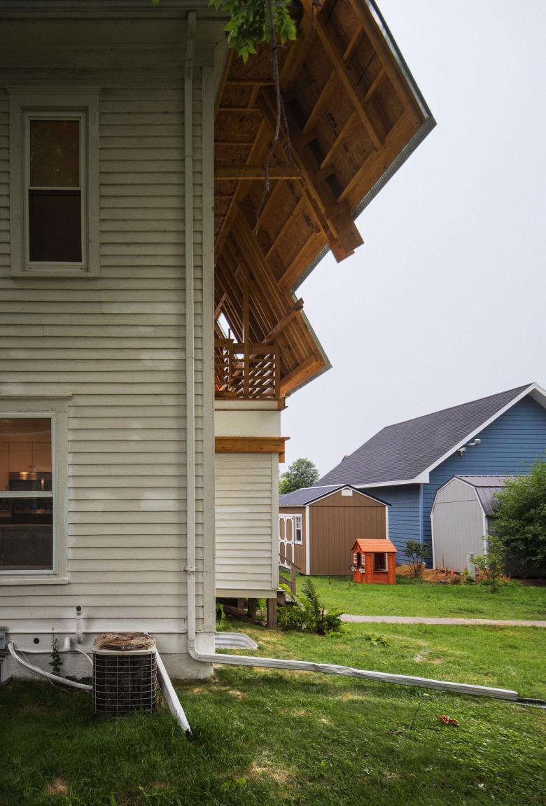 We gave the house a face-lift alright, but the exterior and attic addition became much more stripped-down and easygoing than the basement part of the project. Thinking about a dark church crypt and then a very happy, sunlit nave up above, I ultimately approve of the discontinuity however. Additionally, while the attic may not have the ornamental flourish I think it ought to have, it does nevertheless possess a confident stature and a climactic ending: the traditional dormer launches out of the roof plane, and becomes its own thing, king of the hill, head-like, the Eye of Sauron. I’m sure someone’s done it before, but I personally have never seen a dormer like that.