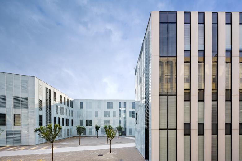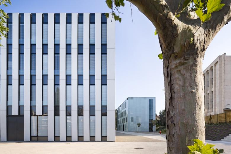 Deshalb fiel Feichtingers Wahl auf Zurückhaltung, um nicht zu sagen: architektonische Neutralität. Einem Objekt zieht er einen Raum vor, einem vollen Volumen ein leeres, einer Architektur einen Ort. Indem er das Programm in mehrere kleine Bauten aufsplittert, lässt er einen Eingang in den Campus entstehen. Durch die Finesse der Positionierung der Bauten und die Subtilität des Ausdrucks der Fassaden gibt er dem Ort eine Identität. Zwei wesentliche Komponenten des Projekts, für die sich Feichtinger die charakteristischen Züge des Campus zu Eigen macht und sie zugleich neu interpretiert. Eine diskrete Art, diesen kleinen Zubau in eine von Frankreichs wichtigsten Universitätsanlagen zu integrieren.