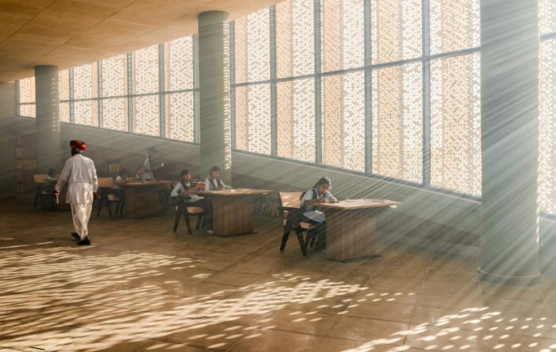 While India has a population of 1.4 billion and nearly 50 cities with at least one million people, the country is predominantly rural. Evidence of this can be seen in the Nokha Village Community Centre designed by Sanjay Puri Architects, a building that serves 144 small villages near Nokha, Rajasthan. The architects answered a few questions about the recently completed project.