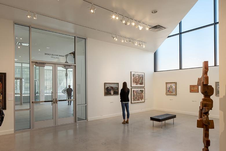 The 9,000-square-foot addition includes an entry, lobby, museum store, café, galleries, and art storage and curatorial components. The 20,000-square-foot renovation includes new office and administrative spaces, a collection study center, a lecture space, a revised collections storage layout, and upgrades to building systems and finishes.