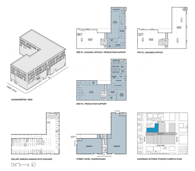 ONStage is located in the dense, urban neighborhood of Astoria, Queens. Unlike most film and TV production studios around the world with land to spread out facilities amongst numerous single-story buildings, building in NYC requires a densely packed strategy to maximize land resources. The design provides a highly marketable building with maximum flexibility and use of space.