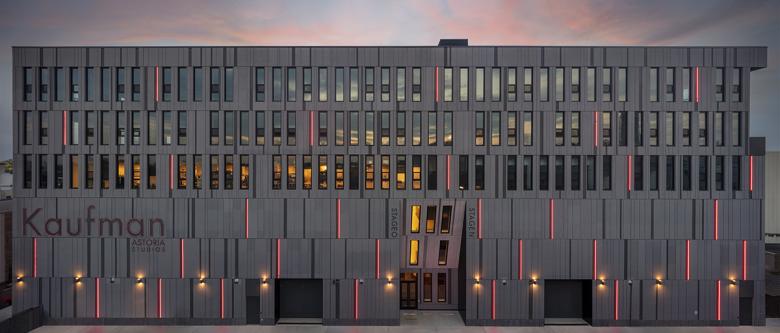 Kaufman Astoria Studios (KAS) is the hub of a creative environment, promoting cultural, commercial, entertainment and residential activities that together foster economic growth and a unique community. The new ONStage building completes George Kaufman’s vision for a studio campus, expanding on its rich history in New York City for over 100 years. The remaining underused parcels of land within its campus were zoned for manufacturing, its most recent use as surface parking and a long defunct gas station. This studio development densified the site to its highest and best use, transforming a blight to the neighborhood into a new amenity. The project gives Kaufman Astoria Studios greater connection to the community with frontages both on the campus backlot, which hosts free neighborhood events, as well as along city streets.