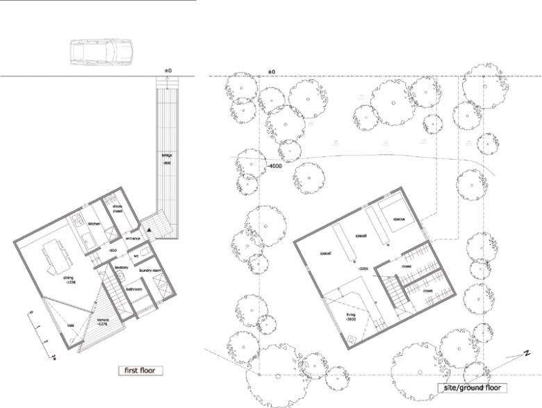 Floor plan. Access is through the second floor via a bridge from the road.