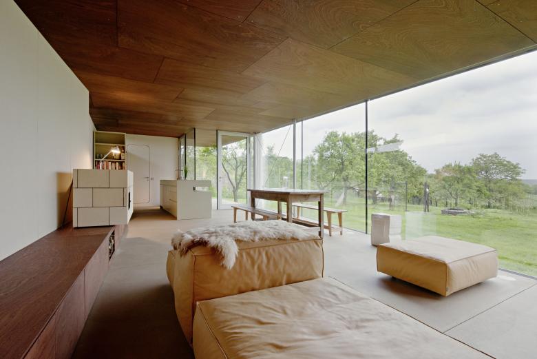 With a small budget, a lot of self-build and a highly developed sensitivity Carmen Wiederin and Philipp Tschofen from propeller z have made a desolate farmstead into an atmospheric refuge. A section of the barn roof was cut out, in its place a lightweight space capsule now sits on the top of the hill. Its sunny glass façade captures the landscape and ideally complements the existing building.