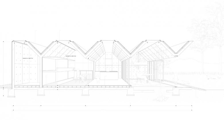 In one-story homes, you have the sky above, the forest or landscape to the sides, and the earth below. It’s possible to incorporate each of these appealing facets of the natural world into the interior space. When I drew up the ground plan and sections for this project, I brought those elements into the architecture via the gradation from exterior to interior.