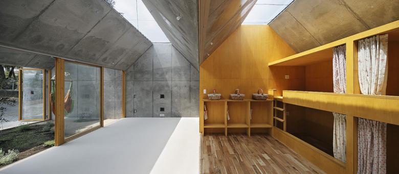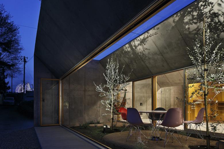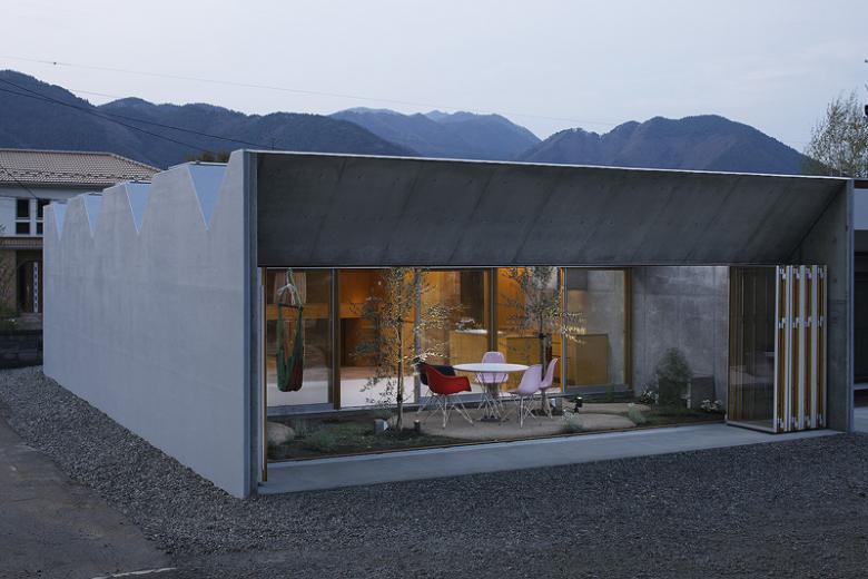 The temperature in Fujiyoshida gets below-10 degrees Celcius in winter. Rather than design a house where the family would be shut up inside during the long winters, my concept was to create a more open space where they could sense the outside environment, both physically and emotionally, and relate to the weather in a positive way. They wake up to the call of wild pheasants; they can see peacocksfrom their bedrooms; they eat in a dining room where grass and trees grow. That’s the kind of daily life the family has.