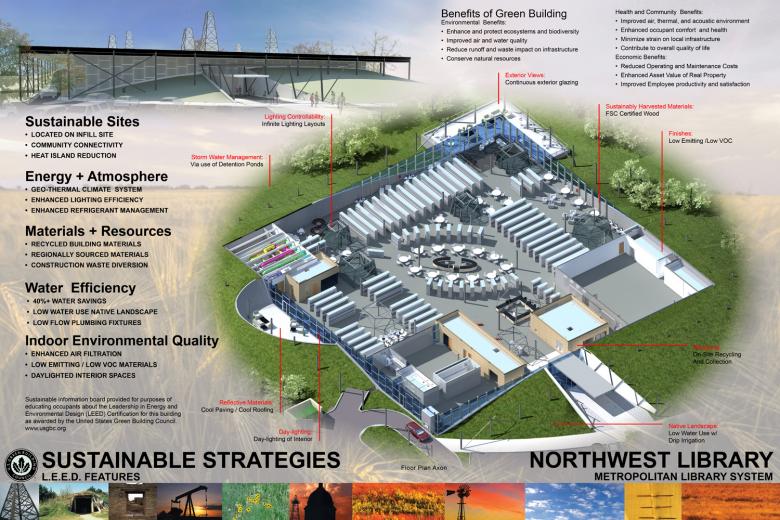 The end user, Metropolitan Library System, had definite ideas of programmatic space for certain user functions and adjacencies that were incorporated into the floor plan layout for optimal building/user operations. Daylighting was important to the client as well. The client also desired, given the regional location of the building, a storm safe room/refuge area to be incorporated into the design.