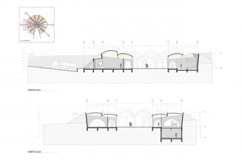In short, the project, as the studio describes it, consists of 12 reinforced concrete walls, 22 vaults that make up the roof and a perimeter slope that constitutes its exterior facade — all combined in a very expressive way.