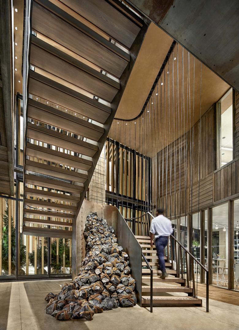 Within the buildings, use of regional materials in construction and finishes reduced the embodied energy in the project, while low V.O.C. adhesives, sealants and finishes and stainless-steel entry mats at all building entries reduce indoor pollutants. Each residential unit has a composter built into the kitchens, while the Hotel provides charging stations for electric vehicles.