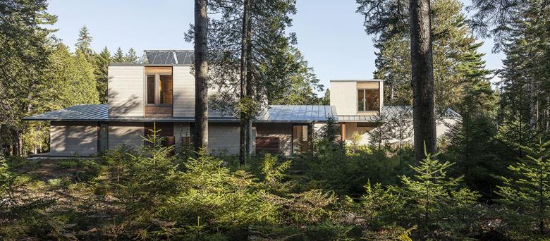 The house is simple: there are two rectangles, one for living and one for sleeping, connected by a glass connector. It is also complex: it is Net-Zero energy and LEED Platinum. In its first year is produced 38% more energy than it consumed.