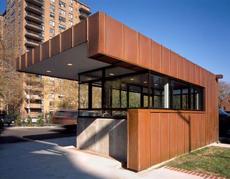 New York City-based Hangar Design Group answered some questions about their design of a small Security Kiosk on the northern edge of the Pratt Institute's campus. It is a small but important element in the school's northward expansion.