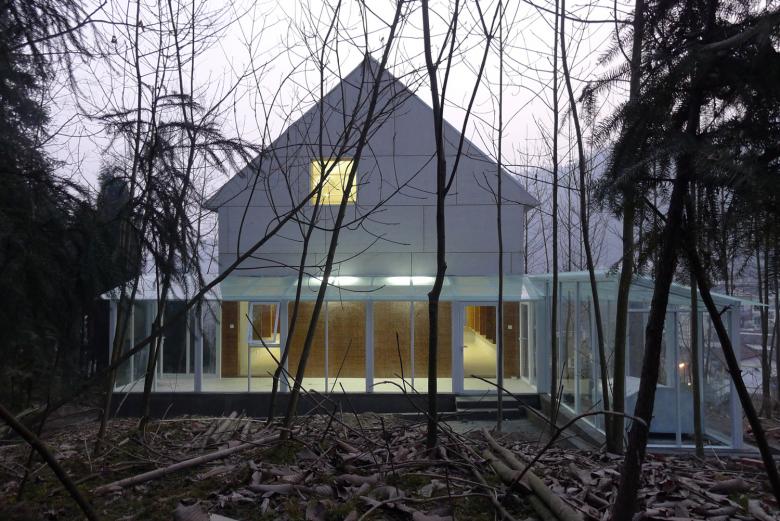 The Wenchuan earthquake in 2008 seriously damaged the region of Baishuihe Nature Reserve, where the last giant pandas live in their natural environment near Pengzhou in Sichuan Province. At the end of 2012, the team around Zhu Jingxiang was commissioned by the WWF to develop a sustainable and earthquake resistant building for an education centre on a hill behind the village of Xiaoyudong. Here, the residents of the neighbouring villages and tourists can learn about the habitat of the giant panda and related environmental issues.