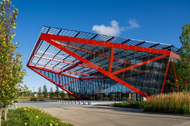 For twenty years, the Pritzker Military Museum & Library was a tenant in existing buildings in Chicago, therefore lacking an architectural image. In May of this year, the nonprofit institution that was founded in 2003 opened its new bespoke home near Kenosha, Wisconsin — an angular steel and glass building that is notable as one of Helmut Jahn's last designs. The architects at Jahn/ answered a few questions about the Pritzker Military Archives Center.