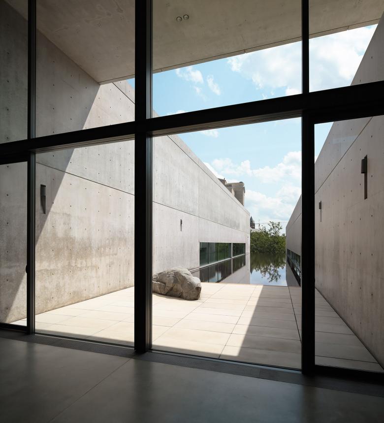 The galleries in the building's lower level are accessed from a new stair near the large full-height window overlooking the central reflecting pool, in effect looping the building around this signature water feature in the aim of improving visitor movement. As expected, concrete continues into the lower level, but it is more sparse than upstairs. Wood, used for the floors, is more prevalent, giving the new galleries the calmness and serenity Ando was striving for.