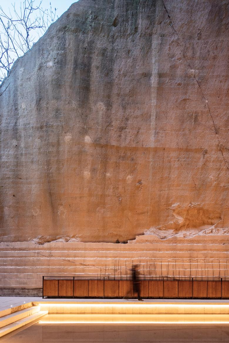 The question of what to call these spatial conversions and installations is hard to answer. Architecture is typically concerned with the creation of spaces, volumes, façades, openings or roof forms, all categories that are not that relevant here. An already created collection of spatial volumes carved organically into the rockface became the basis for a kind of interior architecture combined with landscape planning or land art, that with relatively little intervention can produce public places with a new quality and transform what was an ecologically problematic legacy into a social, cultural and economic benefit for the local population.