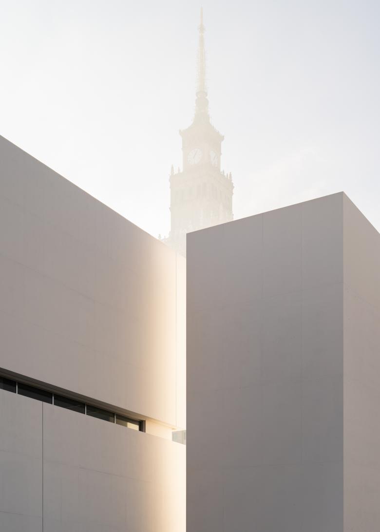 The influence of Meier on Phifer is evident in the museum’s design, which features white concrete walls, gridded white ceilings, light terrazzo floors, and brushed matte stainless steel. The overall look is cool and restrained — a literal white cube. A horizontal cut through the building at mid-level, with skylights above, structures the museum's white tofu-like mass. Despite its giant size, it still is marginalized by the giant urban vacuum that it stands on. With a massive 147,000 m2of space, Plac Defilad is the largest city square in Europe. Designed for communist propaganda parades, it later hosted Pope John Paul II's 1987 visit, where he celebrated Mass, before becoming a marketplace and, eventually, a car park. In the meantime, taller Western commercial towers, like Norman Foster’s Varso Tower, were built in Warsaw. Still, the 1955 Palace of Culture and Science, designed by Lev Rudnev in the style of Moscow's "Seven Sisters," remains the dominant feature on the skyline. Despite calls for its demolition from the Law and Justice Party (PiS), and even from Foreign Minister Radosław Sikorski, the tower is still standing — the unwanted “gift” that continues to define the city.