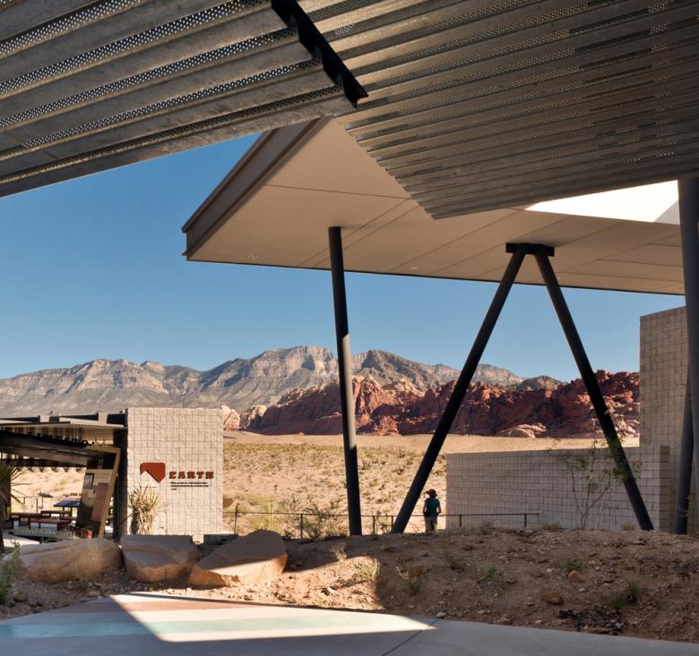 The design of the new facility provides an outdoor experience which instills in individuals a sense of personal responsibility for their land’s well-being. Key to the visitor’s understanding of Red Rock Canyon is the need to experience, and be a part of the inspirational desert landscape. The design of the new Visitor Center fulfills this, where 1,000,000 visitors per year are introduced to the geology, science, art and culture of Red Rock Canyon, and encouraged to visit the nearby real thing.
