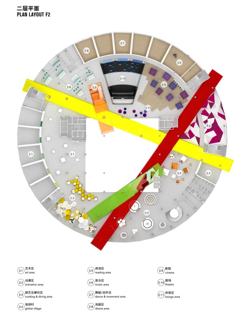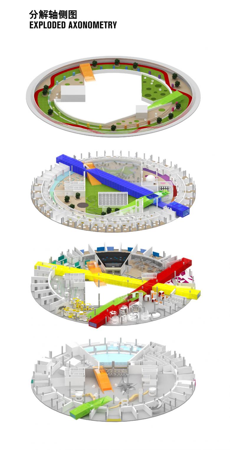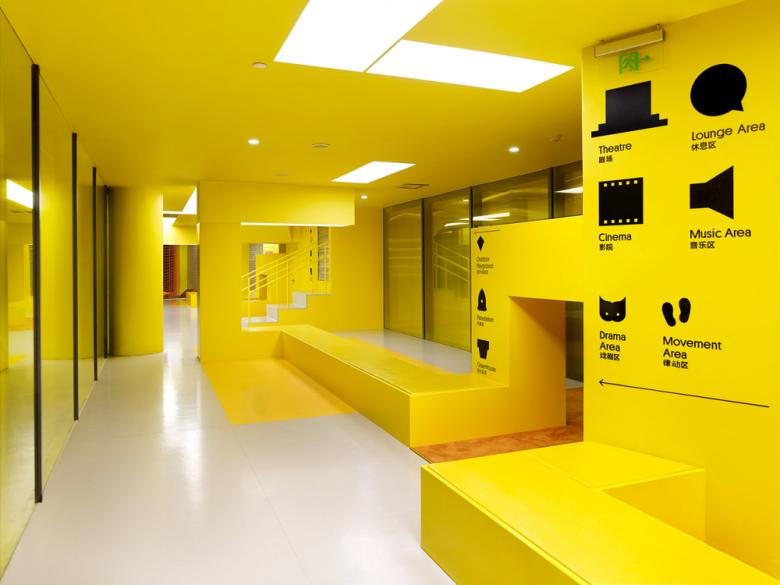 The architects of Crossboundaries received the commission to reoccupy one of the drum-like business buildings with a program for children’s education and play; the Soyoo Joyful Growth Centre. The client, dedicated to new approaches in pedagogy, asked for an innovative approach and together they developed a strategy for space allocation, building infrastructure and the overall image, for the rather humble shell of the existing building. The education program is based on role-playing, and on children being free to explore their own approach to the world. The spatial solution for Soyoo resonates with international advisor Sir Ken Robinson’s philosophy on education. That it should be personalized, and that children should be exposed to an environment where they appreciate learning and discover passions.